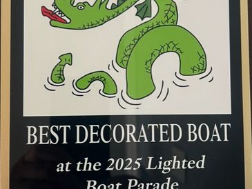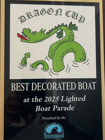 The Lake Orion Lions Club enter a pontoon boat in the Lake Orion Lake Association light boated parade. The lions club won the best decorated boat.